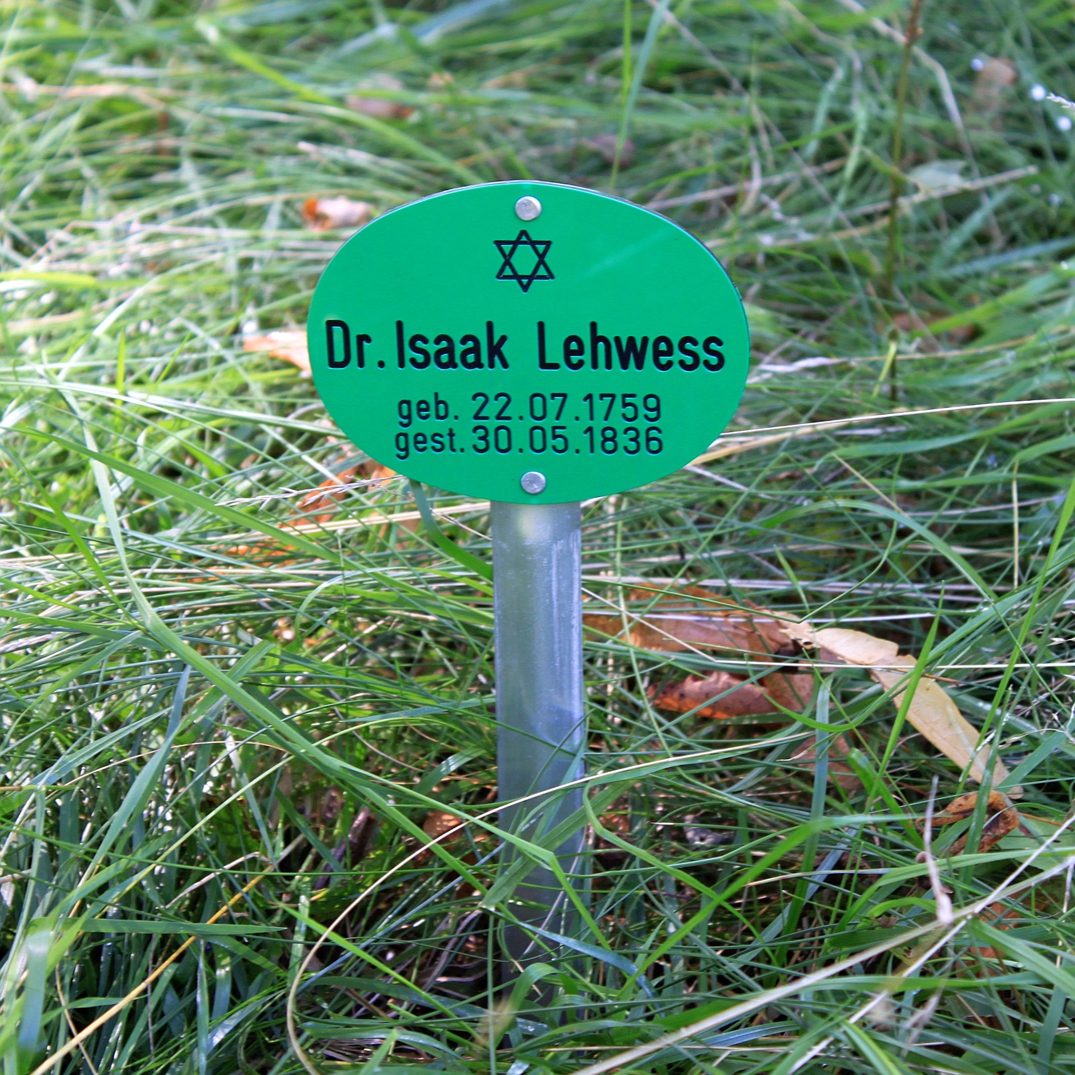 Isaak Levy, a Jewish physician born in Königsberg in 1759, first studied medicine in his hometown before completing his studies in Frankfurt/Oder with a doctorate; he had a long career at the hospital and poorhouse in Potsdam. From 1814 onward, he called himself Lehwess, though he did not convert. With his wife Zipporah, née Lippmann of Berlin, he had six sons and one daughter. Dr. Lehwess died in Potsdam in 1836. His grave is marked today by a small marker.